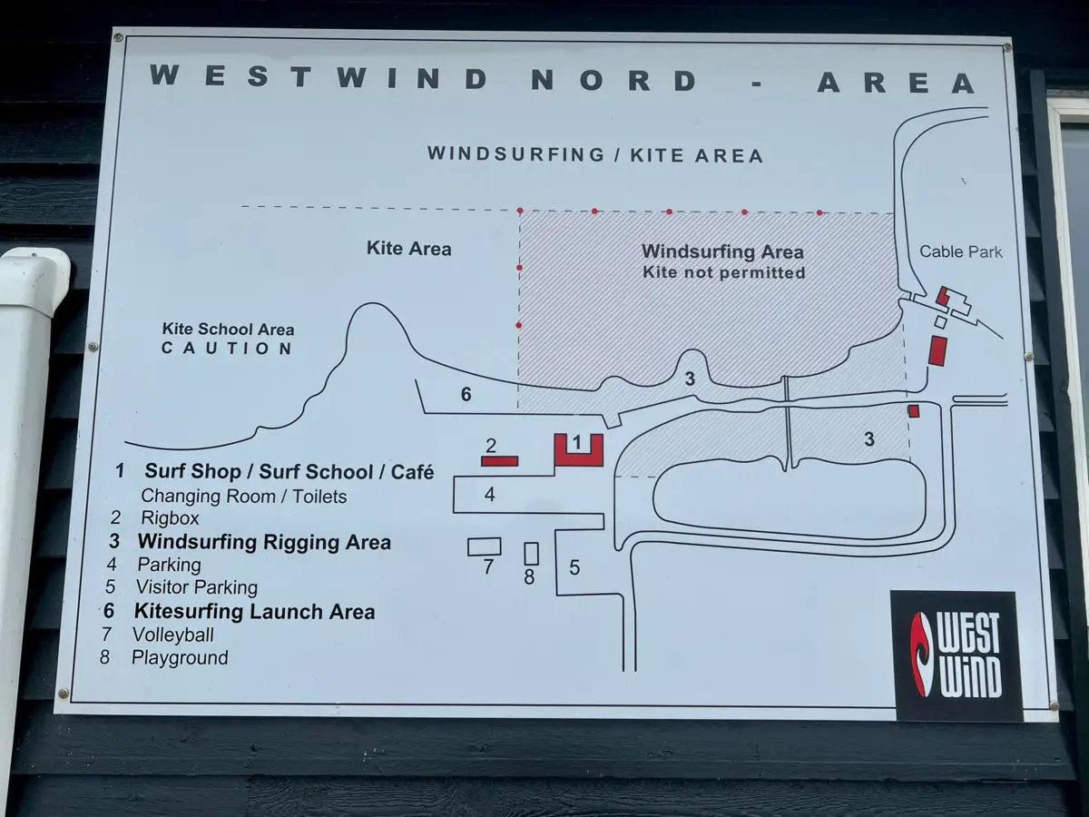 Hvide Sande Nord is the flat water spot on the north side of Ringkøbing Fjord, at Hvide Sande. Spot with a large standing zone, sandy bottom and a small sandy beach. All wind directions work except west (blocked by the Holmsland Klit sand barrier) and south/southwest (blocked by the town). In westerly winds, head to the Kloster spot. Paid parking (40 DKK/day).