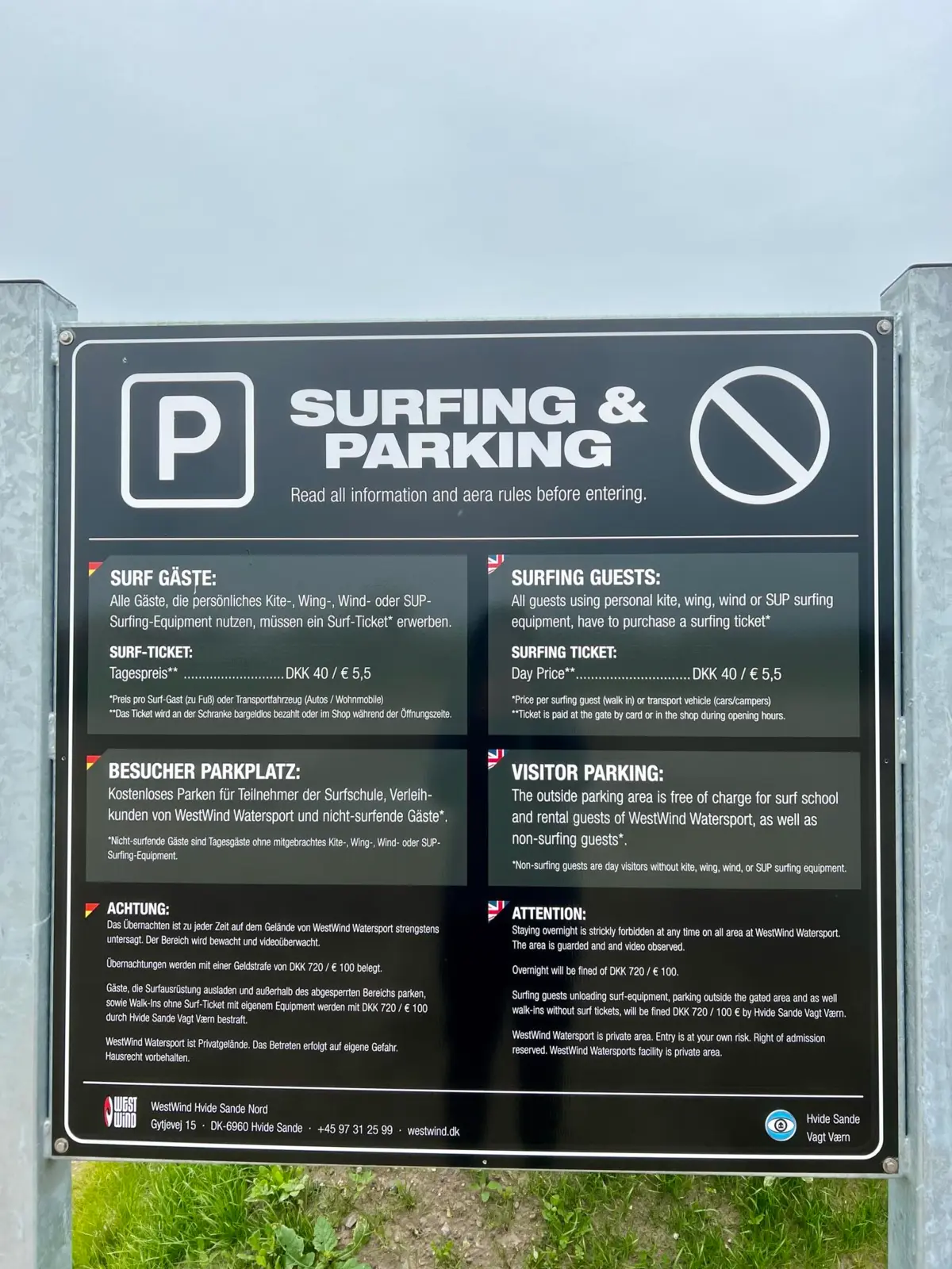 Large paid parking (40 DKK/day) directly at the spot. Overnight parking prohibited.