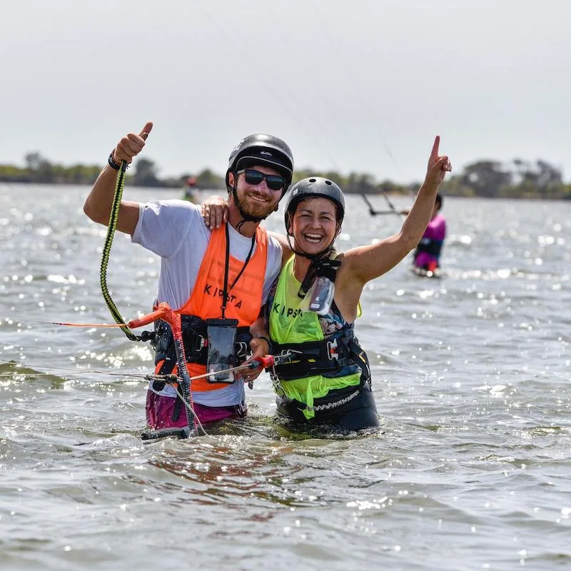 Nous sommes totalement flexibles en termes d’heures, d’intensité et de dynamique de votre cours de kite. Chaque jour, vous décidez combien de temps vous voulez passer dans l’eau le lendemain. Vous n’avez pas besoin d’acheter de forfaits de cours à l’avance.
