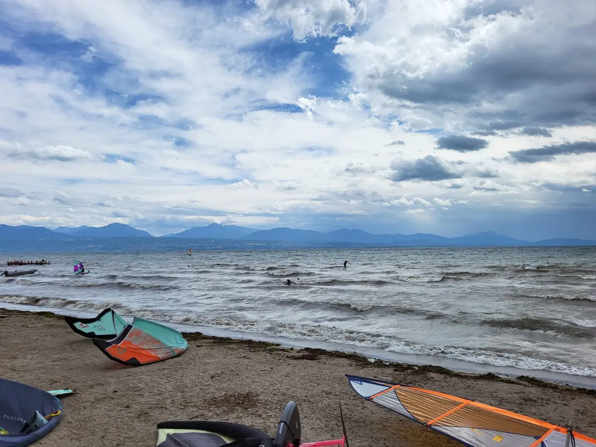 Autre point important, c'est un spot de sud-ouest, donc un vent dépressionaire qui rentre par fois sous forme de grains avec des très grosses raffales à l'approche de ceux-ci. Donc la bonne stratégie est de toujours observer au vent ce qui vous arrive dessus. Si c'est tout noir et que vous êtes déjà bien toilé, il est temps pour vous de faire une pause. Si vous vous faites avoir par de très grosses raffales, rester au large avec l'aile à raz de l'eau et attendez que ça passe. C'est plus safe que de rentrer complètement sur toilé sur une plage orientée on-shore...