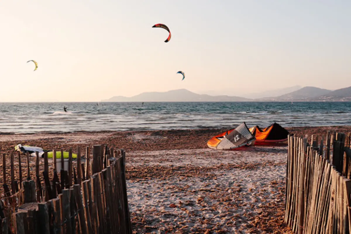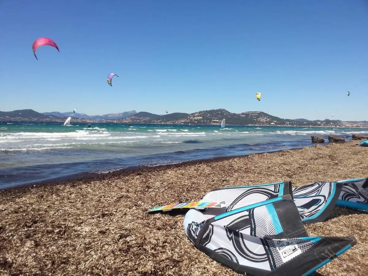 Spot mythique du sud de la France la baie de l'Almanarre est un top spot de kitesurf, windsurf et wing surf. C'est une grande baie, qui peut être assez sécurisante en fonction des orientations de vent. En vent d'Ouest à Nord-Ouest, c'est du vent on-shore et des très belles vagues dans toute la baie. En vent d'Est, c'est réservé aux experts avec un vent complètement Off-shore. Par contre le plan d'eau se transforme en mirroir et c'est assez plaisant.