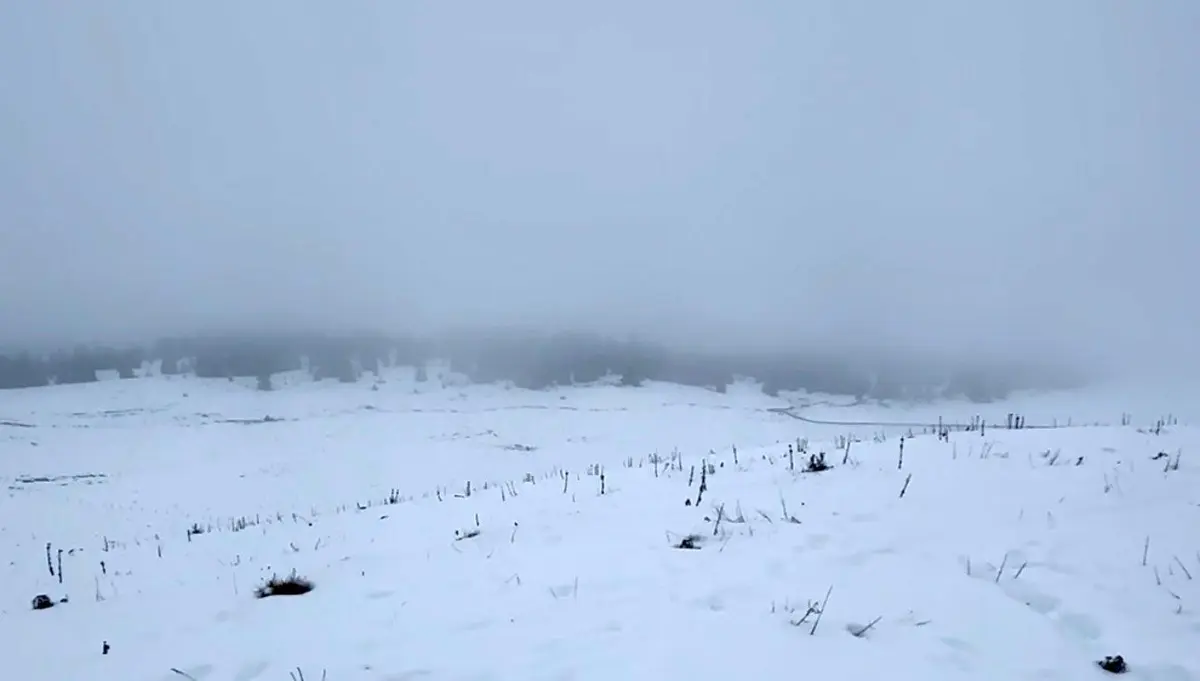 Départ le plus simple depuis le muret en pierre (ski en descente sur le chemin en bordure a l'ouest, retour a pied, mais c'est pas long).